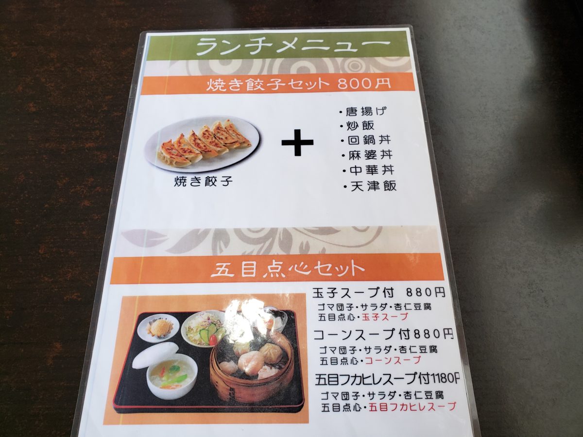 ランチメニューは他にもラーメンセット(ラーメンとご飯ものという男性も大満足の組み合わせ!)や焼き餃子セット(定番焼き餃子と人気メニューの組み合わせ)、五目天心セット(五目天心にスープ・ゴマ団子・サラダ・杏仁豆腐が付いた女性も嬉しいセット)があって、お近くの方は毎日来ても飽きないだろうな、という種類と組み合わせの豊富さです。