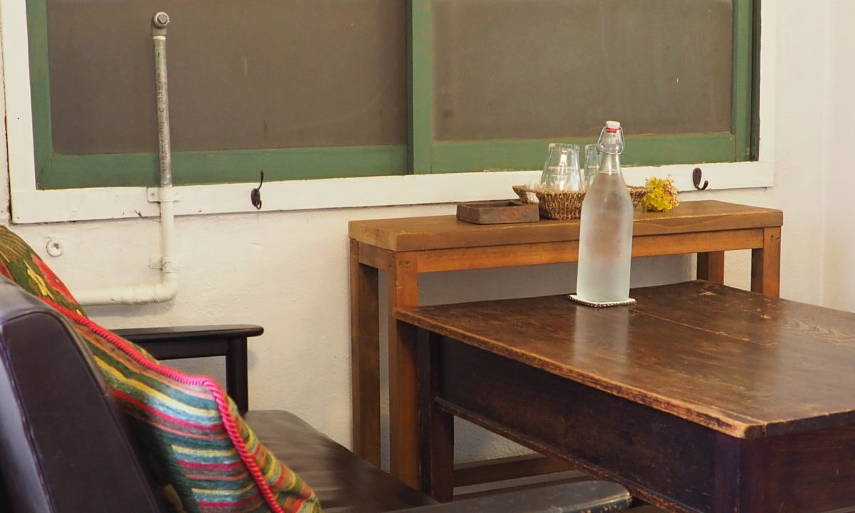 レトロな窓の下は、市場のアーケード。この雰囲気も市場の中にあるからこそ味わえるポイントですね。