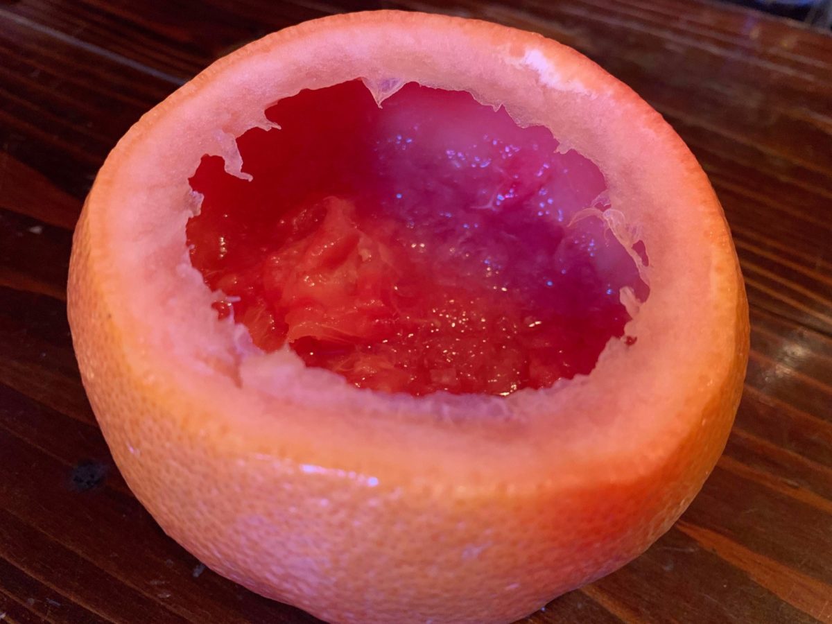 まさかまさかの、まるごとくりぬかれたグレープフルーツにタップリと入った生搾りグレープフルーツジュース!