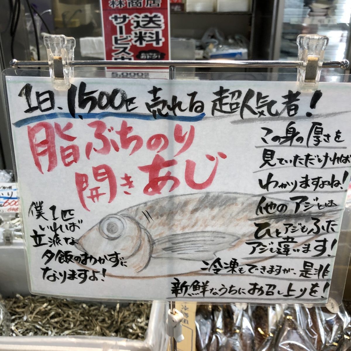 他のアジとは、ひとアジもふたアジも違うそうです…(笑)店長さんったら。(笑)