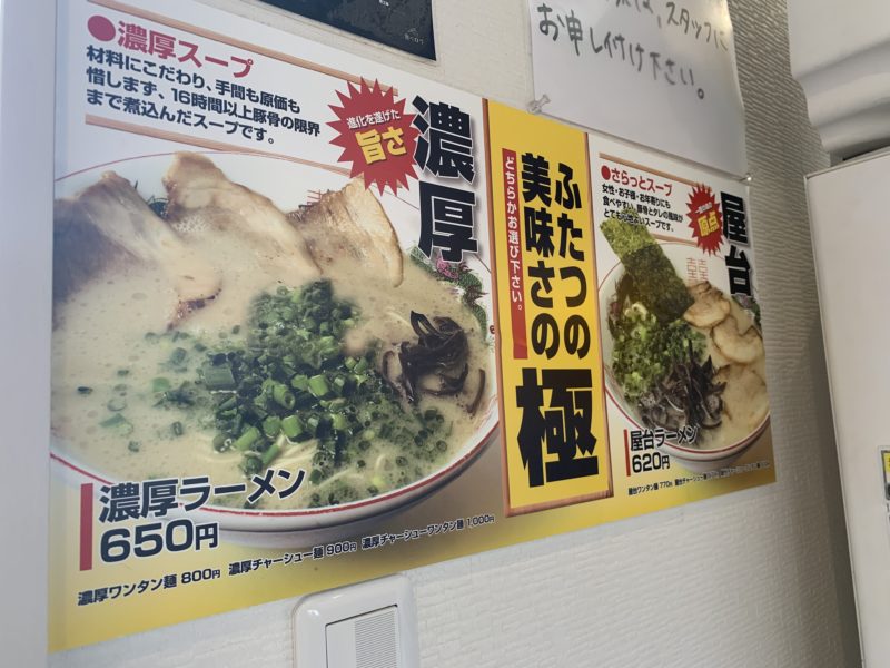 メニューは、16時間以上煮込まれた豚骨スープが魅力の「濃厚シリーズ」と若干あっさりと仕上げられた「屋台シリーズ」の2種類。