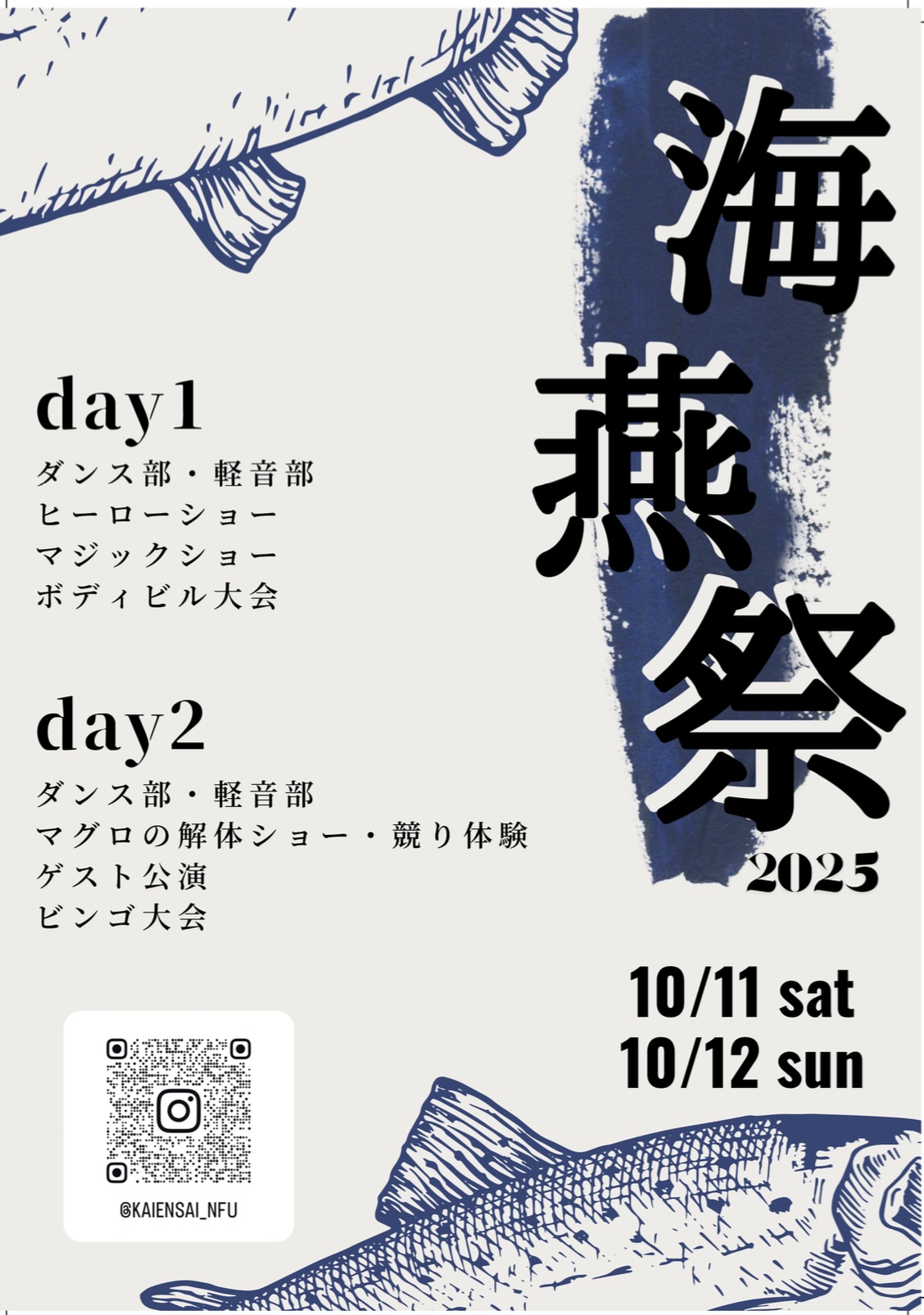 今年も10月11日・12日の2日間、水産大学校の学園祭が催されるとのことで、ご紹介させていただきます!一般の方にも、多くの方にご来場いただきたいそうです。