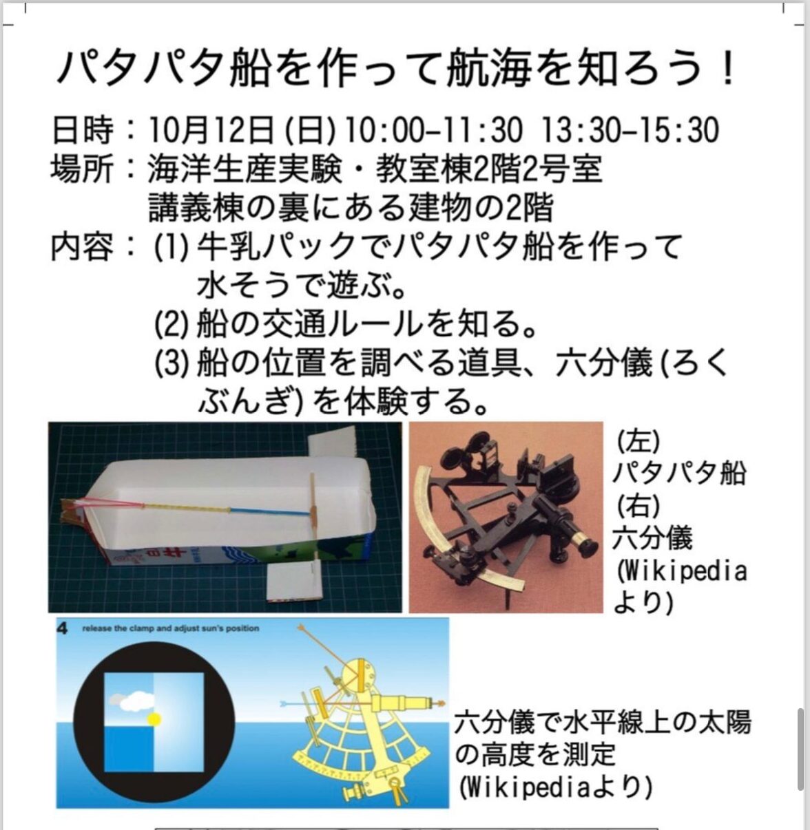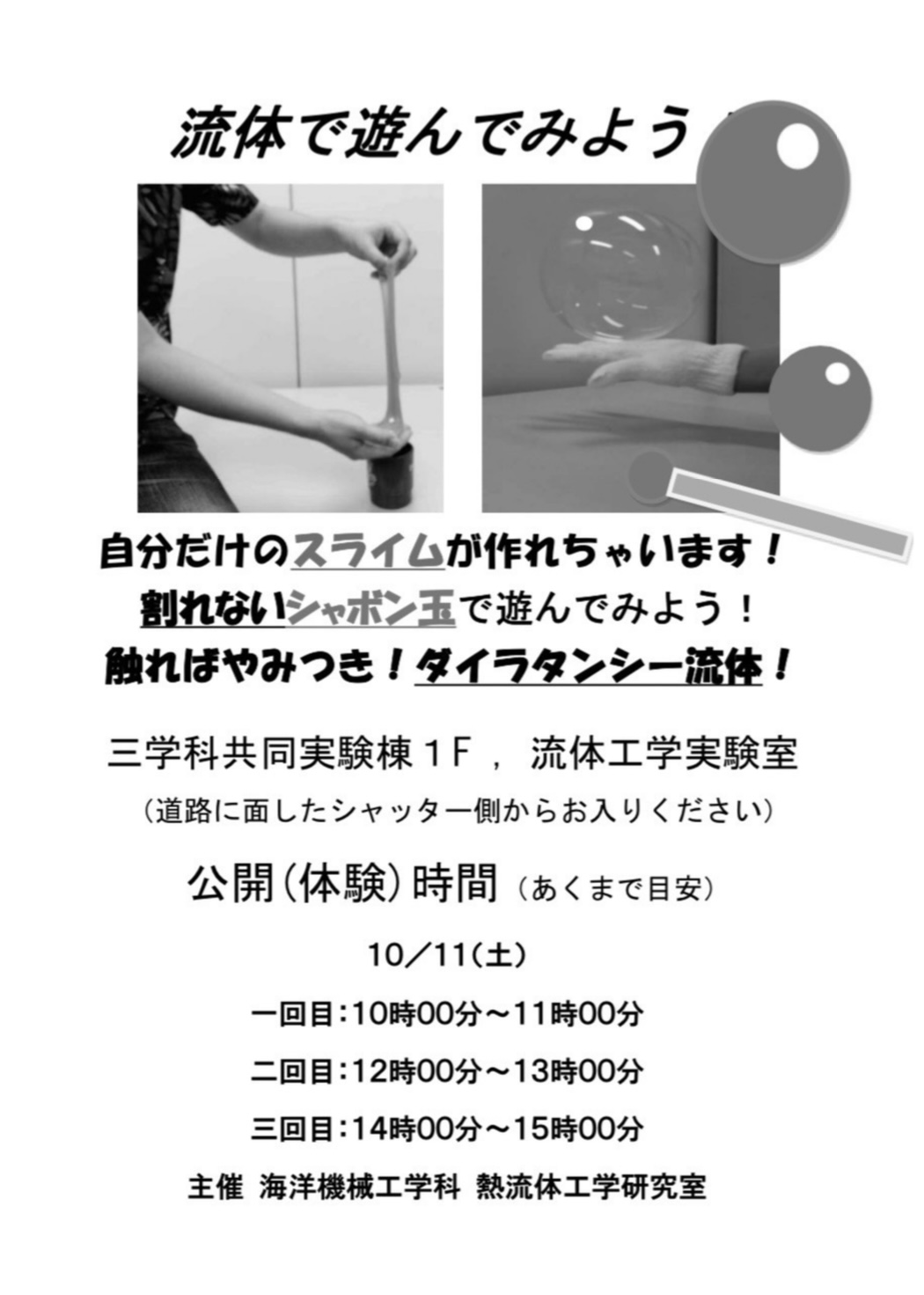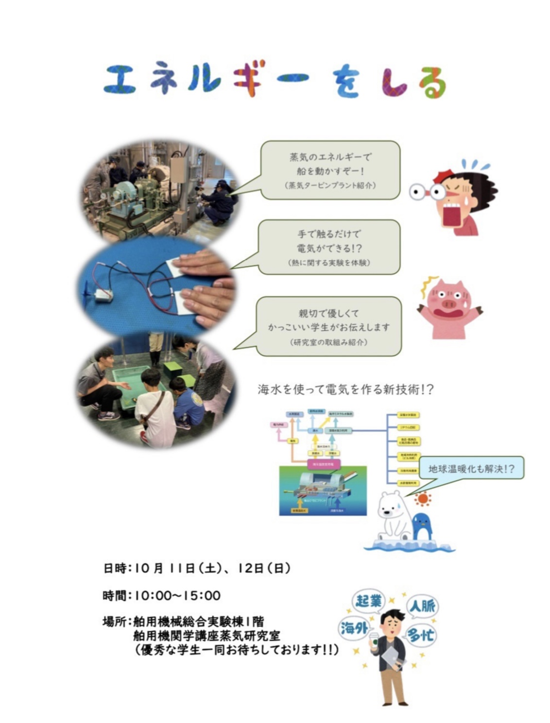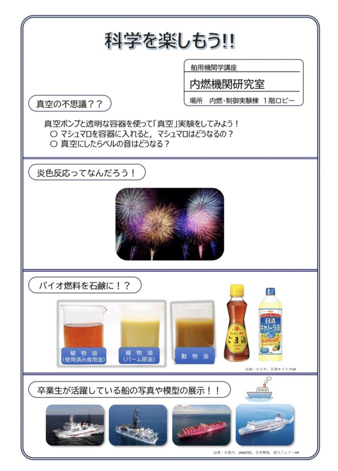 パタパタ船を作ったり、スライムを作ったり、エネルギーや化学などの体験も予定されております。お子さんとご参加すれば、船や、海について学ぶきっかけにもなり、大変おすすめです。