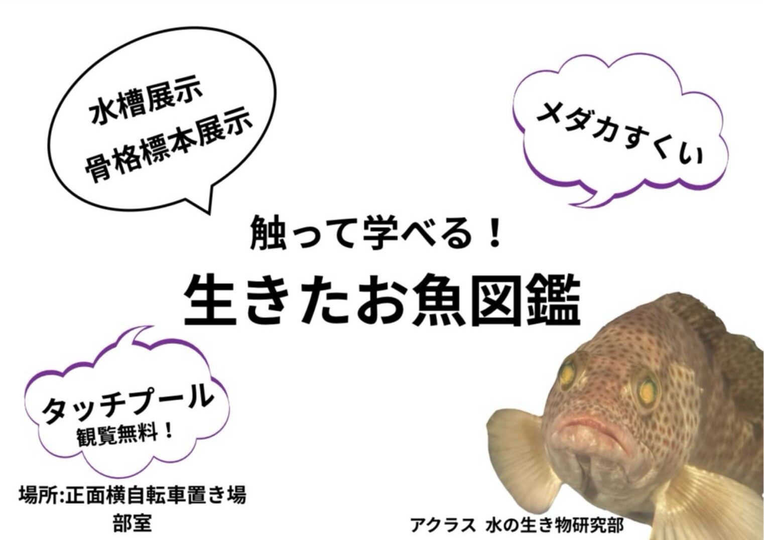 アクラスでは貴重な魚と触れ合えるタッチプールを企画されております。正門横側で実施予定なので、是非お越しください!とのこと。
