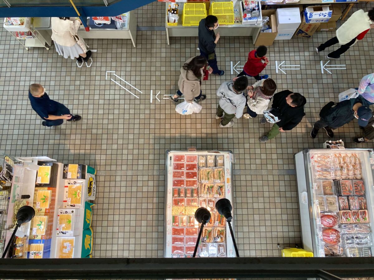 そして、行列の合言葉は「間隔を空けて!」そしてぜひ、以前の唐戸市場の賑わいも(過去の記事を)見てみてください!