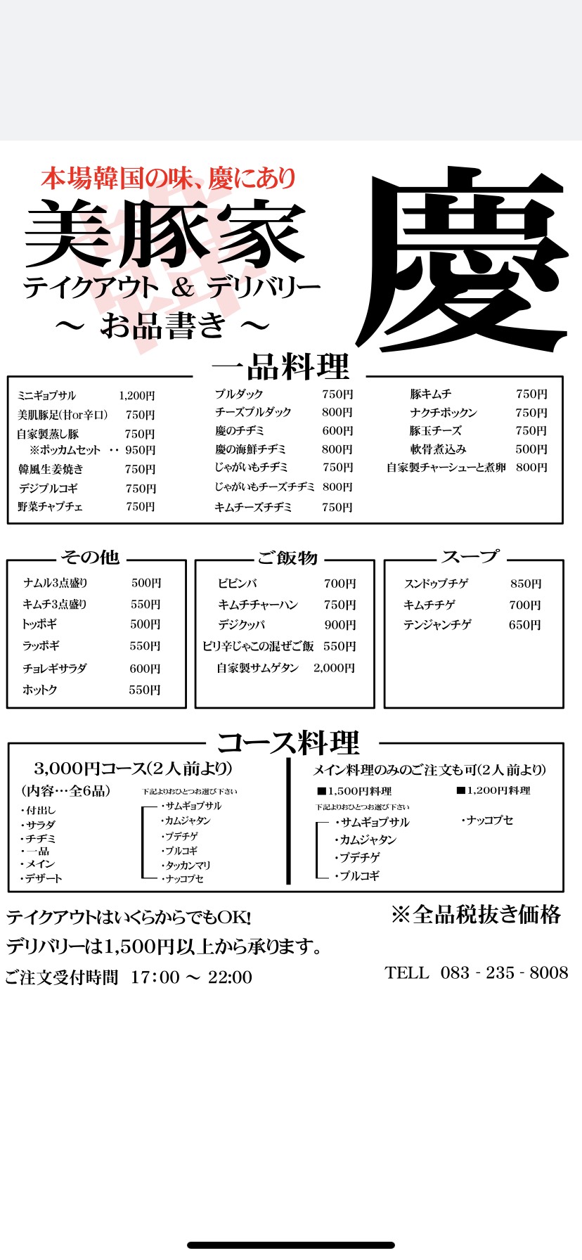 本格韓国料理を是非ご自宅でお楽しみください!テイクアウト、デリバリーどちらも対応いたします。