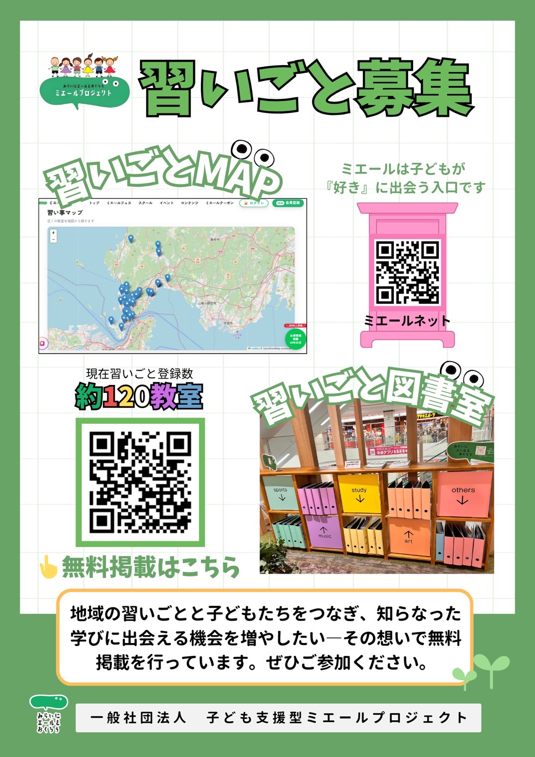 本日は、『習いごと図書室』と『子ども達』を繋ぐ取り組み『ミエールプロジェクト』についてお伝えします。みなさんは、ゆめシティの3階エスカレーター付近のこちらをご存知でしょうか。