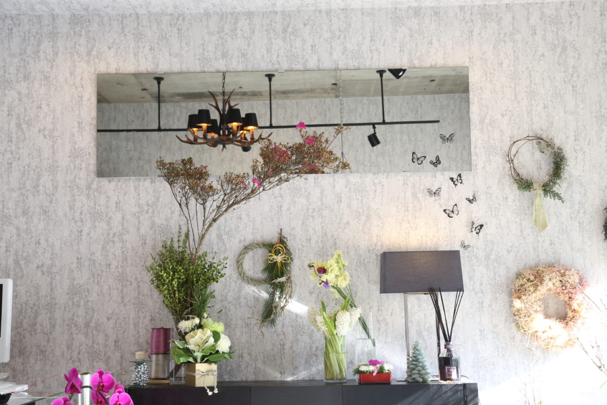 大きなガラス窓越しに、洒落たフラワーアレンジメントのディスプレイ。NYCのチェルシーにある通りのような、ロンドンの街のような。オーナーのmocoさんは「パリ」をイメージしていたそうです(失礼致しました。)道行くマダムたちが「素敵な花!」と、アレンジそのままをご購入されることが多々あるそうです。その一例が、白い葉牡丹(写真)。アカ抜けています。見ても楽しいし、癒されます。 お花屋さん?いえ、「花とインテリアのアトリエ デザインルーム」です。