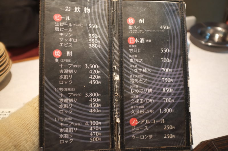 お酒はこんなかんじ。生ビールはグラスをキーンと凍らせているので、ファンが多いのだとか。嗚呼、その説明に肝臓が呼応しはじめる。ください、我にお酒をください。